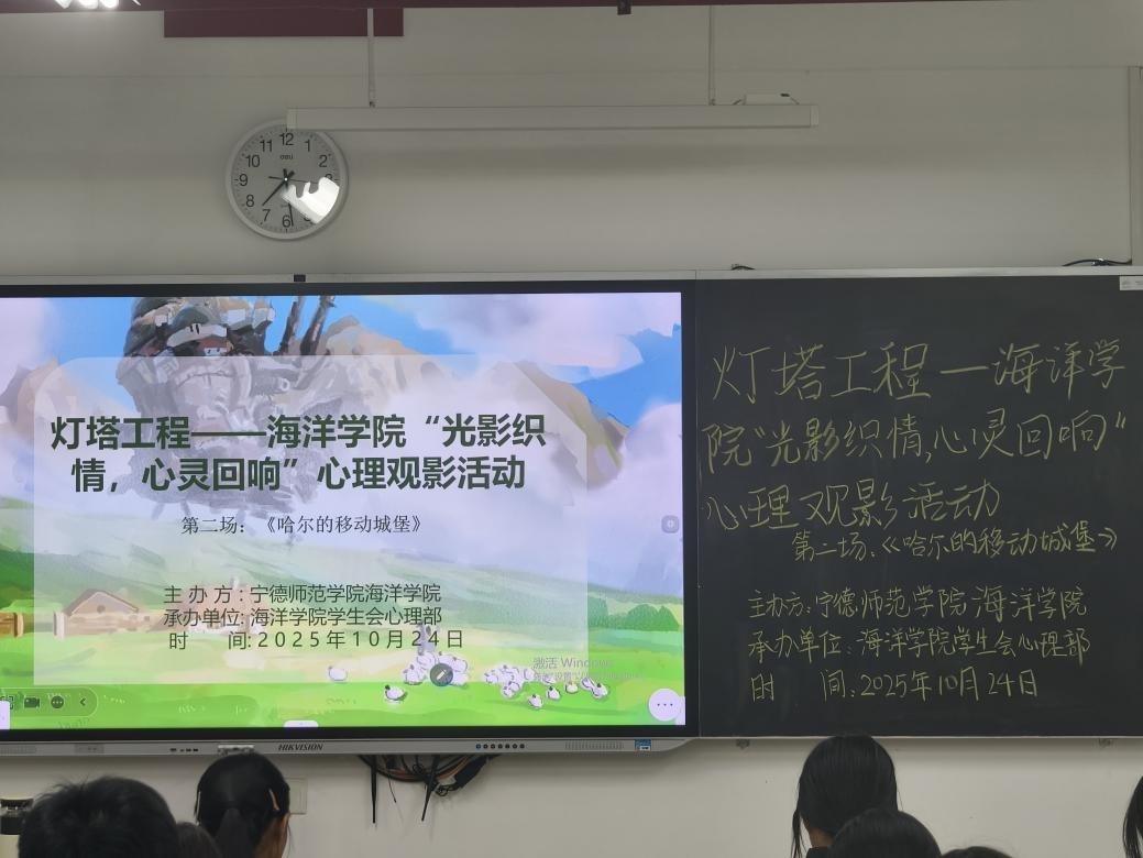 藉此2025年世界精神卫生日宣传教育契机,为丰富校园文化生活,拓展心理健康教育的形式与内涵,陶冶学生情操,77779193永利于2025年10月24日在医教楼601举办了“观影织情,心灵回响”心理主题观影活动。本次活动精选世界著名动画大师宫崎骏执导的经典影片——《哈尔的移动城堡》,意在借助影片中温暖而富有哲思的叙事,引导同学们体悟勇气、爱与自我成长的深刻意义。