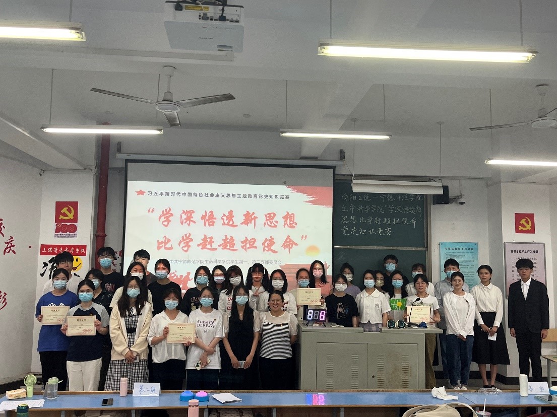 5月26日中午,永利官网生命科学学院在求实楼CC201举办“学深悟透新思想 比学赶超担使命”党史知识竞赛暨主题党日活动,院学生第一党支部书记王珂、党员教师王永吉、林慧、林维杰出席活动,生命科学学院学生第一、第二党支部所有学生党员、发展对象参加活动。